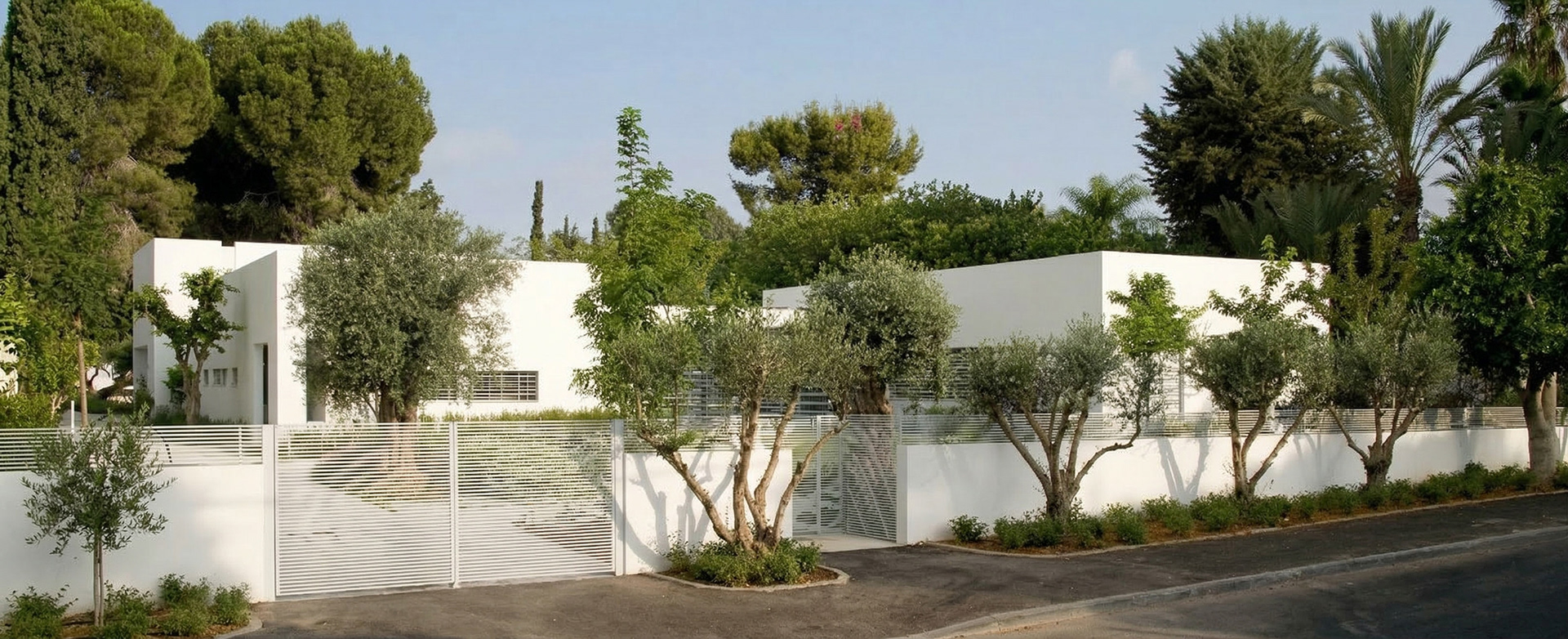 The use of white stucco accentuates the play of light and shadow on the solid and void elements of the structure with its formal simplicity towards the surroundings.