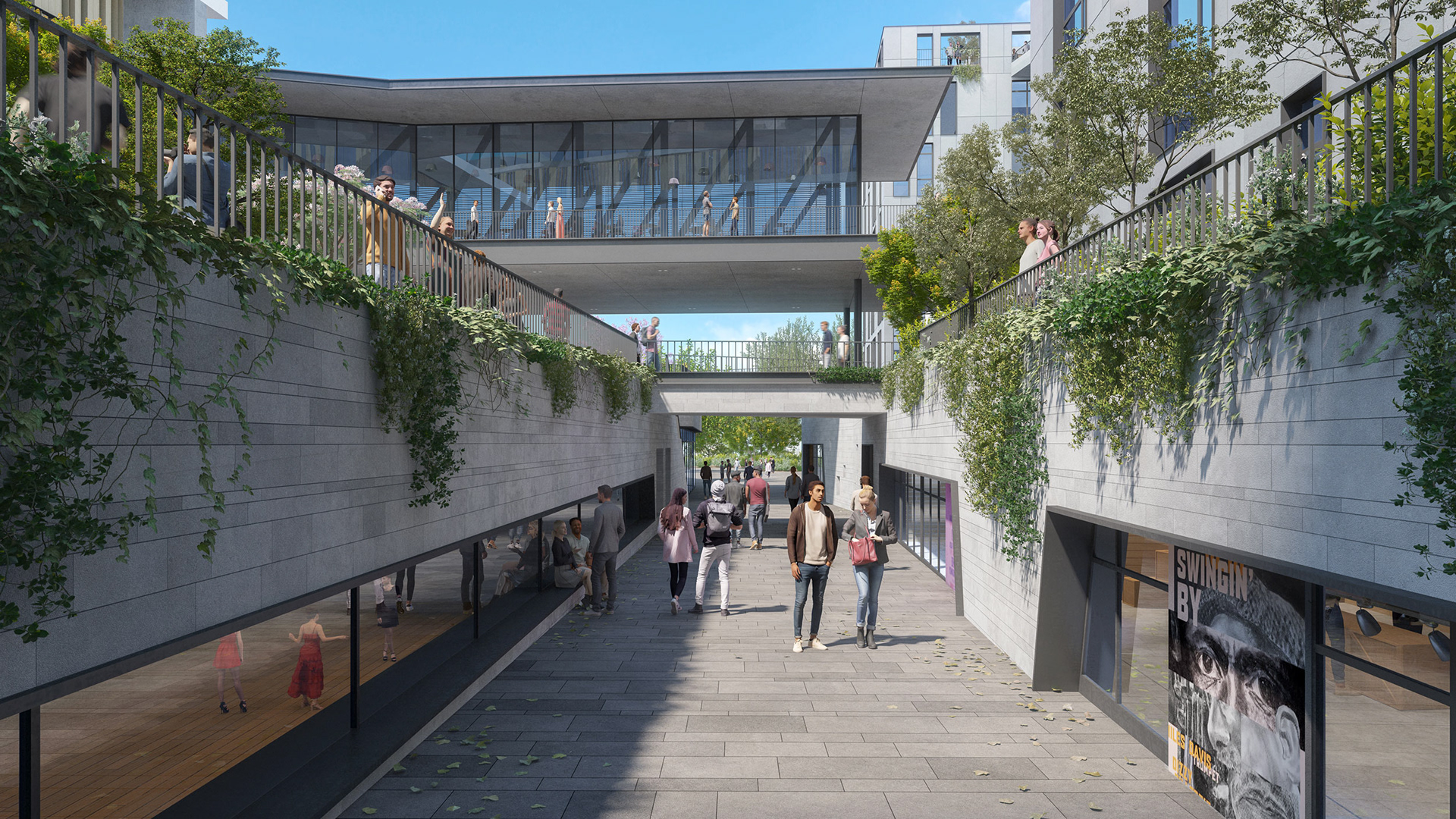 The concept keeps the feel of a Kibbutz in the city, introducing a lot of green open-air spaces throughout the project.